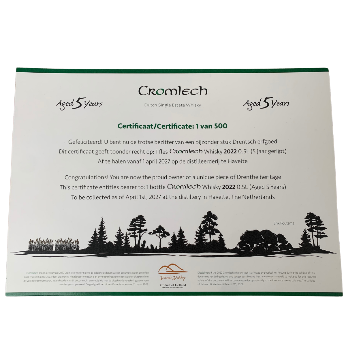Bestel uw certificaat van Cromlech Single Estate Whisky 2022.